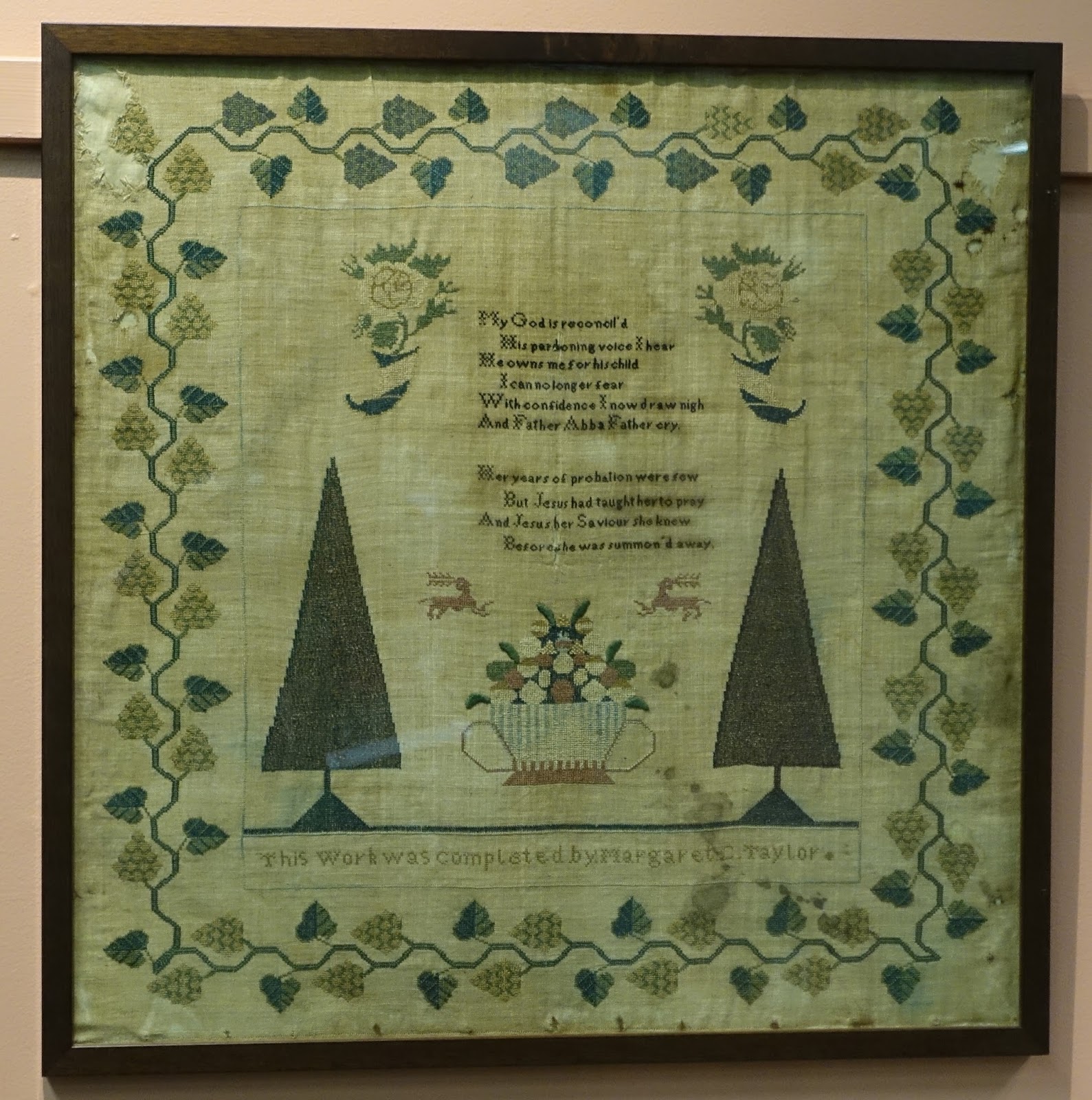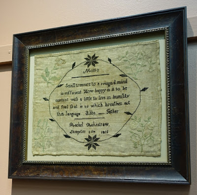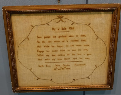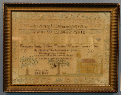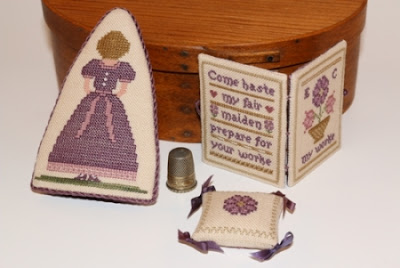 Bobbins (often called spools) aren't a standard size so the chart pak has 3 charts to accommodate various bobbin sizes. The ones for Quaker Sampling VI are the same at the top and the bottom but different in between. These designs look cute on bobbins but can also be made into a little pillow or just laid on a table to display. If about 3-inches of linen is added to either side of the stitching, the design can be made into a drum. There are so many possibilities.